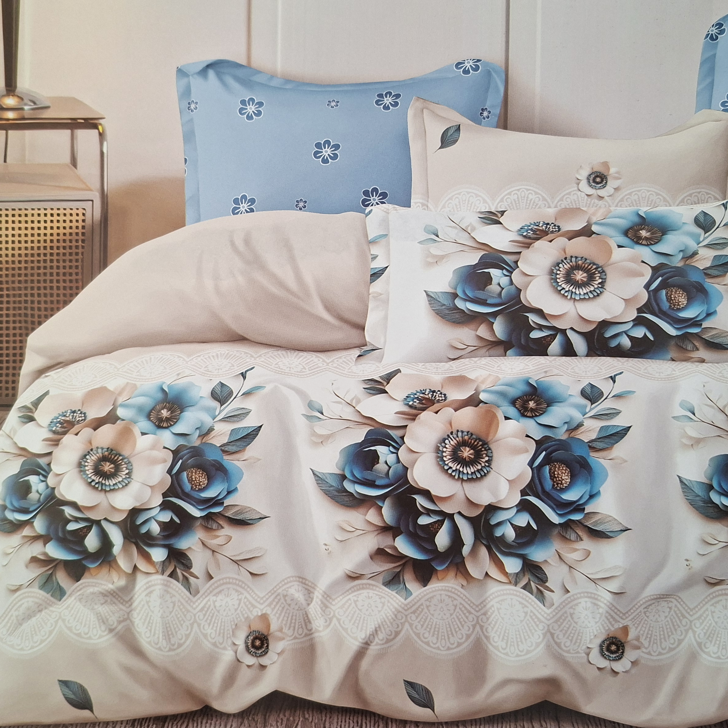 Tekikott 160x200cm; Lina 180x200cm; 2 padjapüüri 70x80cm; Koostis: puuvillasatiin